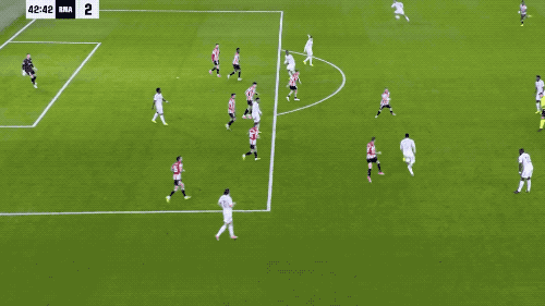 面對(duì)著畢爾巴鄂的高位逼搶,皇馬的戰(zhàn)術(shù)相當(dāng)奏效,那就是找準(zhǔn)時(shí)機(jī),送出準(zhǔn)確的長(zhǎng)傳。